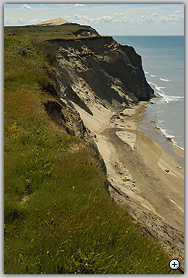 Die gesamte Flugsanddüne wanderte in den letzten 2 Jahren stetig weiter landeinwärts und das nun entstandene Hochplateau direkt am Leuchtturm vergrößerte sich zudem ganz enorm. Der Turm "wandert" dadurch förmlich in Richtung Abbruchkante der Steilküste und es wird nicht mehr lange dauern, bis auch der Leuchtturm nur noch Geschichte ist.