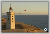 Die gute Thermik an der Steilküste und am Leuchtturm hat sich mittlerweile auch bei den Gleitschirmfliegern herumgesprochen. Besonders abends zum Sonnenuntergang genießen nicht nur die Besucher des Leuchtturms die oftmals unglaublich schöne Lichtstimmung, wenn die Sonne im Skagerrak versinkt.
