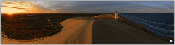 Im Sommer 2013 war es wieder mal Zeit für einen längeren Besuch in Vendsyssel, Jütlands Spitze oberhalb des Limfjords. Wenn man einmal infiziert ist von der Magie des Leuchtturms, kommt man immer wieder hierher. Bereits in den Jahren 2009 und 2011 gelangen mir Panoramen, wie ich sie mir schon lange erhofft hatte. Mein großer Wunsch war es, auch in diesem Sommer ein frühmorgendliches Panorama von der großen Flugsanddüne mit Leuchtturm machen zu können - natürlich bei gutem Licht und ungestört ohne die großen Touristenströme tagsüber.
